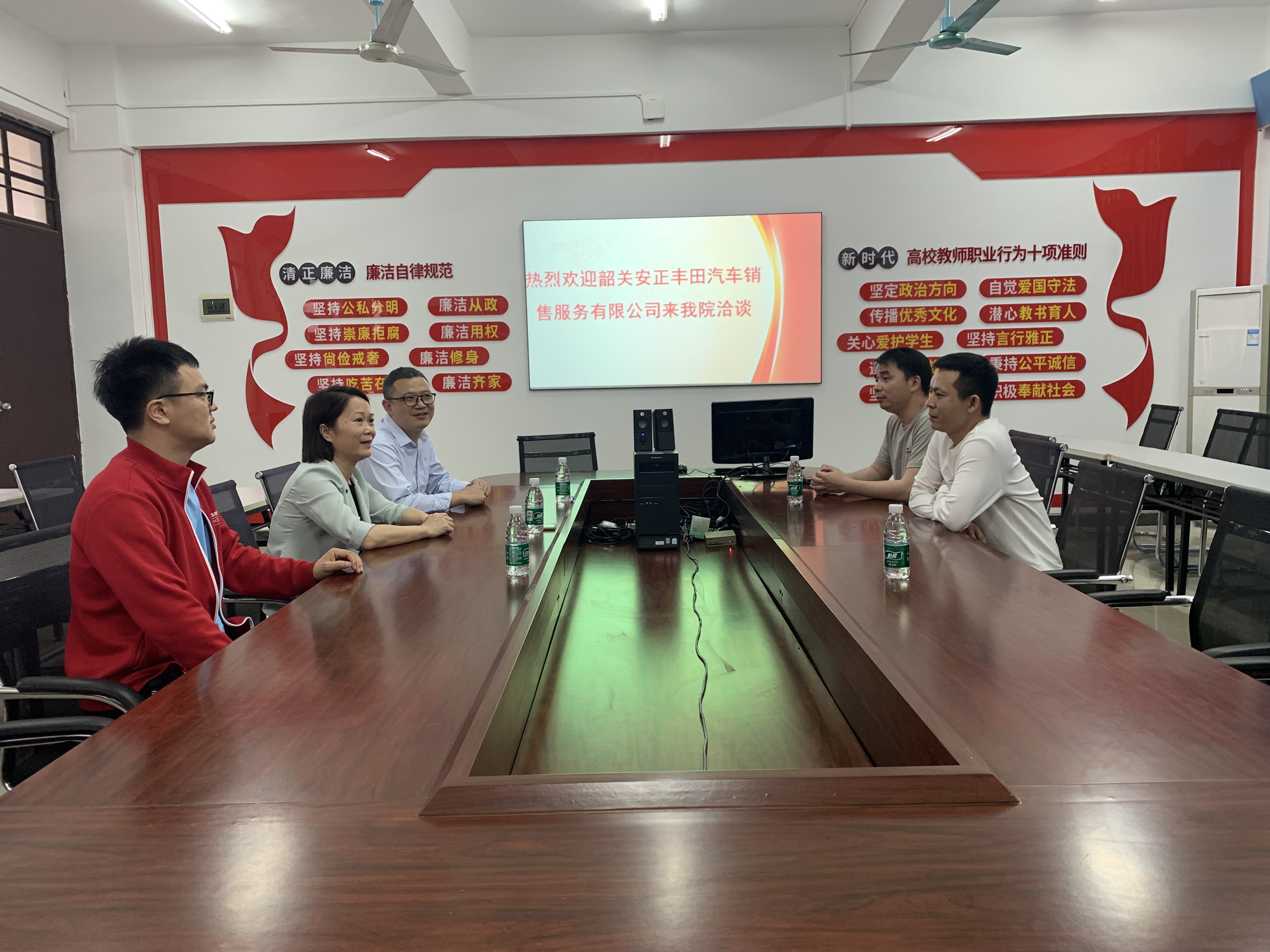 林胜勇、罗羽分别介绍贝壳车匠实业有限公司、韶关安正丰田汽车销售服务有限公司的基本情况,并表示企业和公司可将从员工实习就业、校企联合培养等方面深度合作。