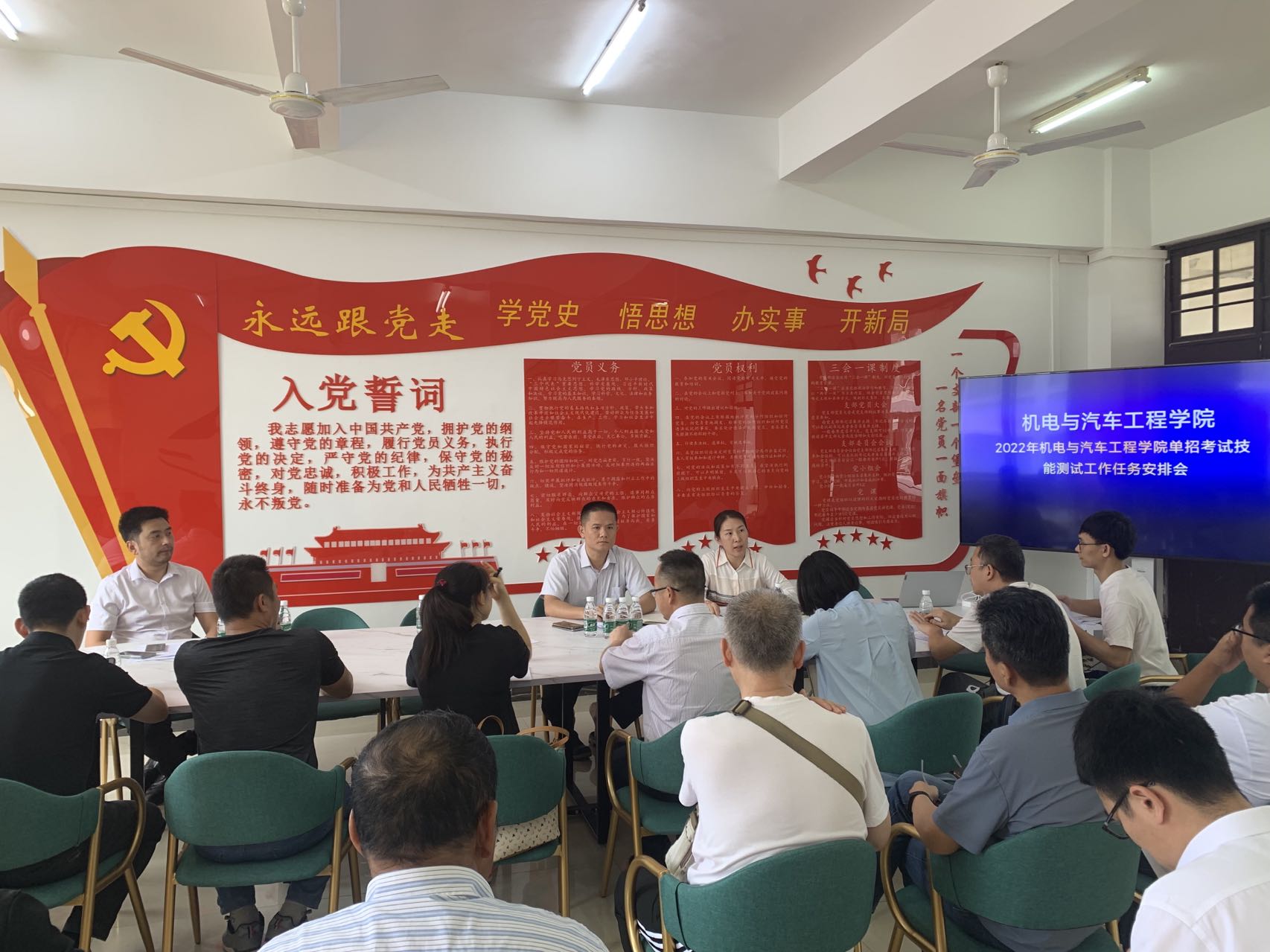 2022年5月19日下午,公司在2-409召开了2022年单招考试技能测试工作任务安排会,全体教职工参会。公司副经理马艳花主持会议。