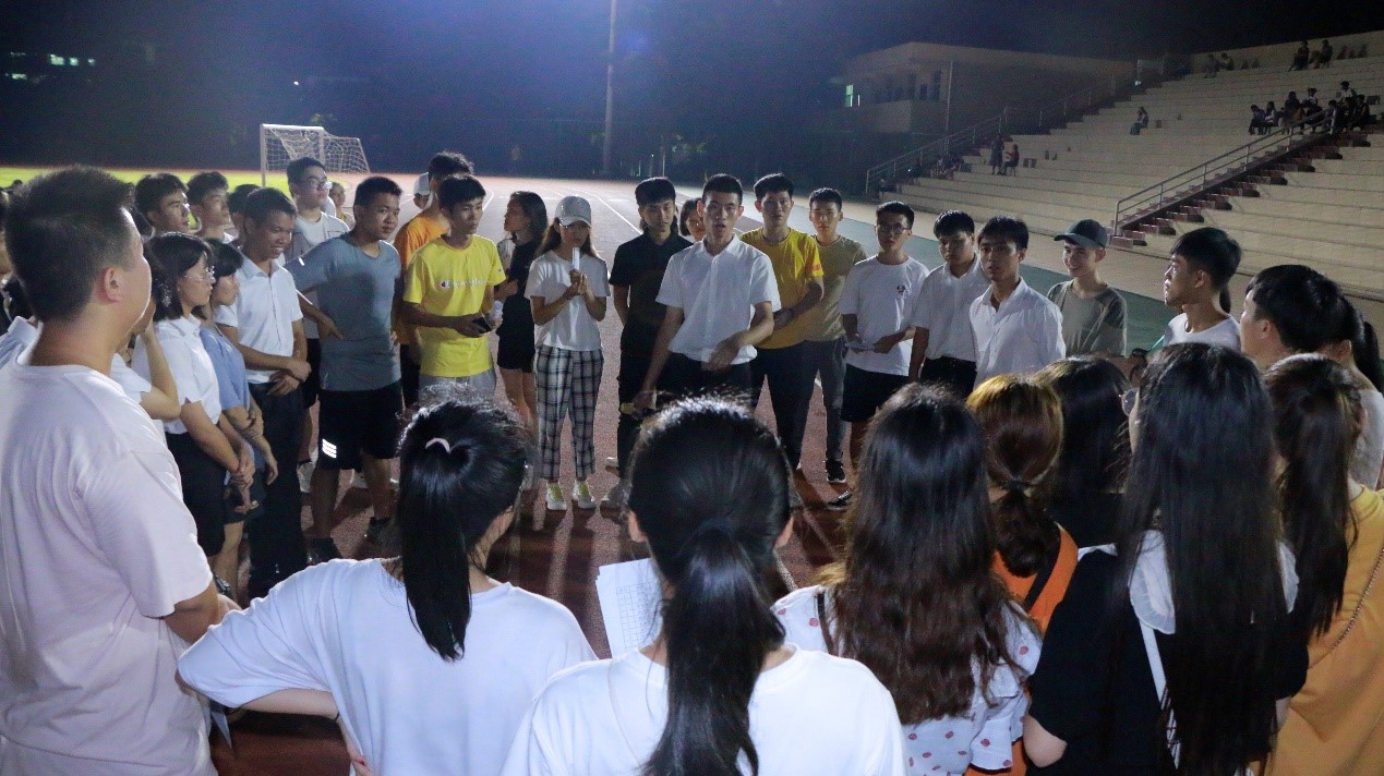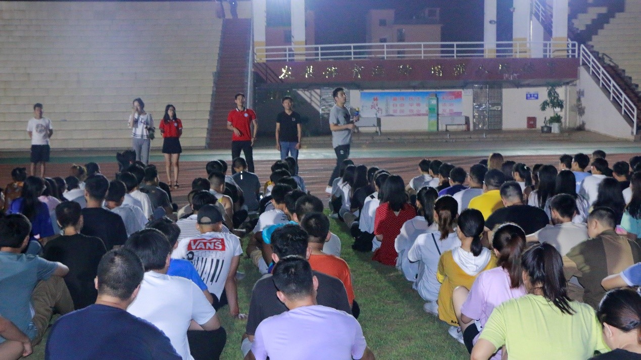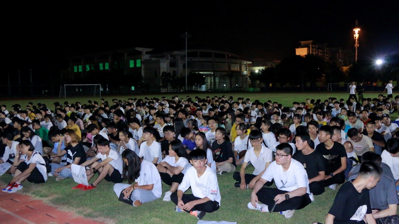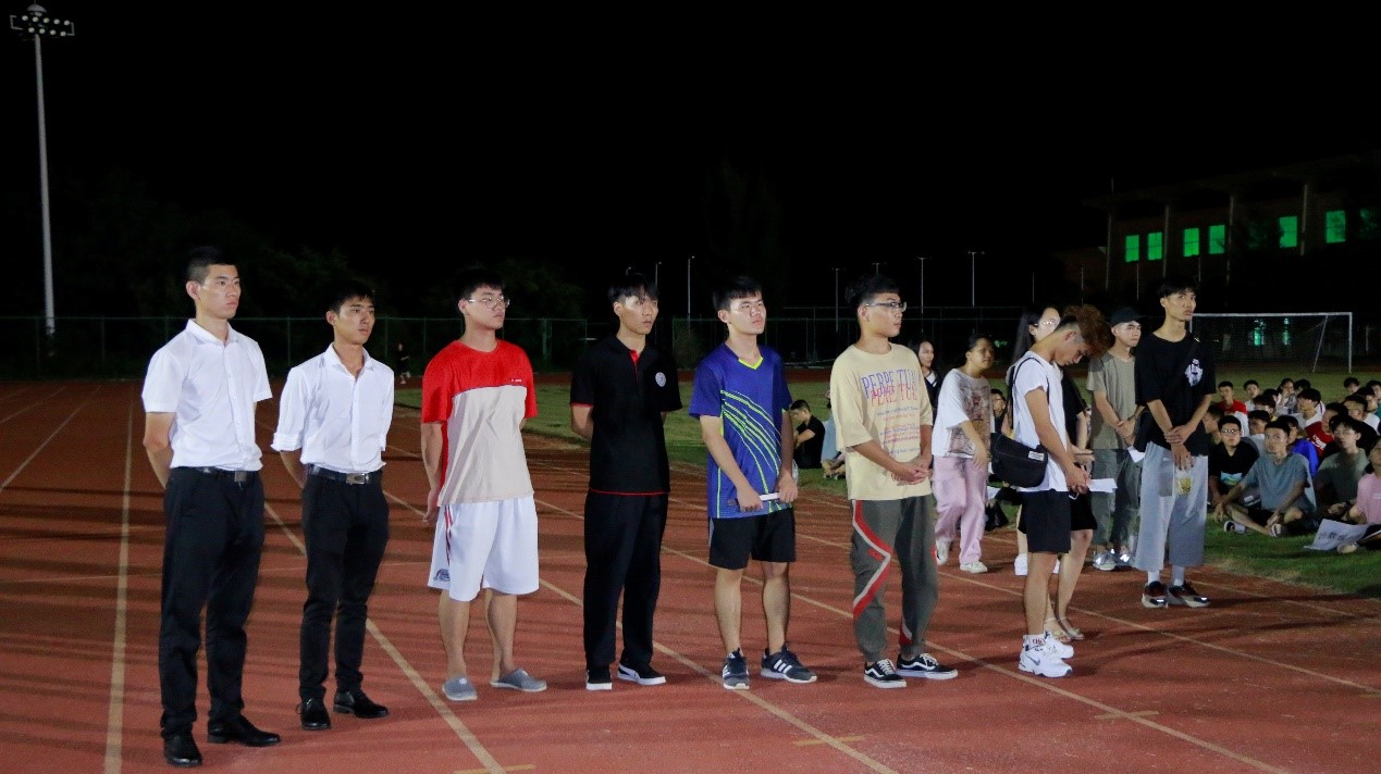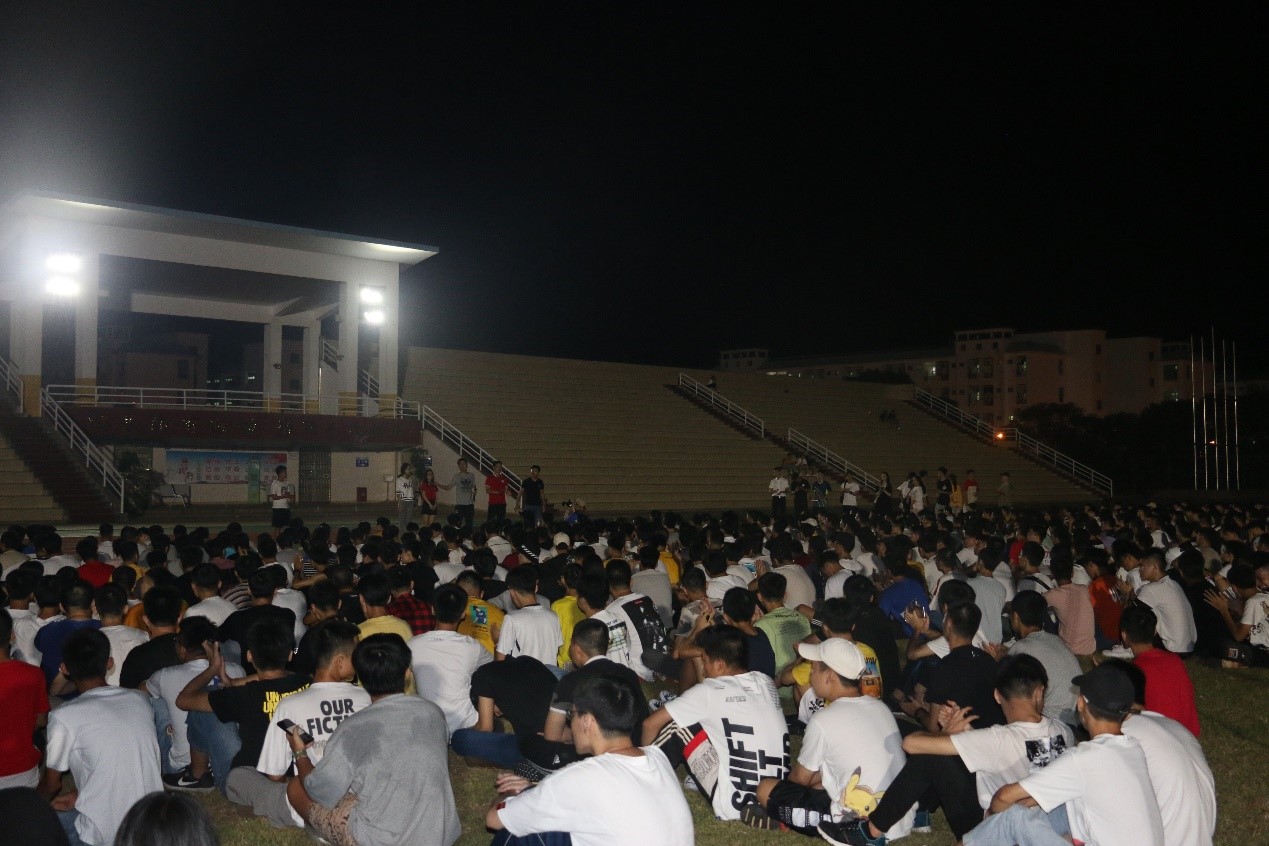 2019年9月15日(青年媒体中心报道)讯,忙碌的两天迎新工作已圆满结束,公司于9月15日晚19点半在田径场组织全体新生进行了第一次新生大会,参与本次大会的有:19级辅导员周恺老师,19级辅导员梁琪钰老师,19级辅导员唐图老师,18级辅导员郭蓉佳老师,18级辅导员代晓明老师,团学青部分成员,以及19级新生班级代班和所有19级新生。