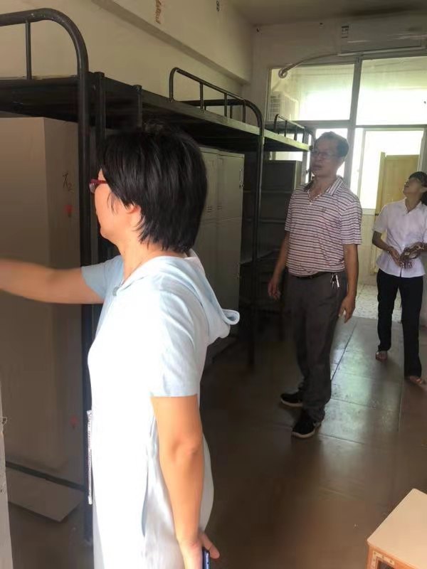 2019年8月30日(青年媒体中心报道)讯,公司新学年实施高等教育扩招政策,为给同学们更舒适便利的住宿环境,各公司配合公司进行了宿舍搬迁改造工作。8月30日下午,为了解员工宿舍的搬迁进展,以及排查员工宿舍的安全隐患工作,公司党总支书记陈继敏、党总支副书记陈亚芳、学工办主任梁其钰、18级辅导员代晓明与18级辅导员郭蓉佳等多位领导老师深入员工公寓进行走访。