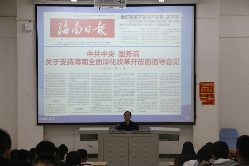 将为18级新生普及关于海南新使命:从自贸实验区到自由港以及如何学习习近平总书记4.13重要讲话精神和中央12号文件精神重要内容