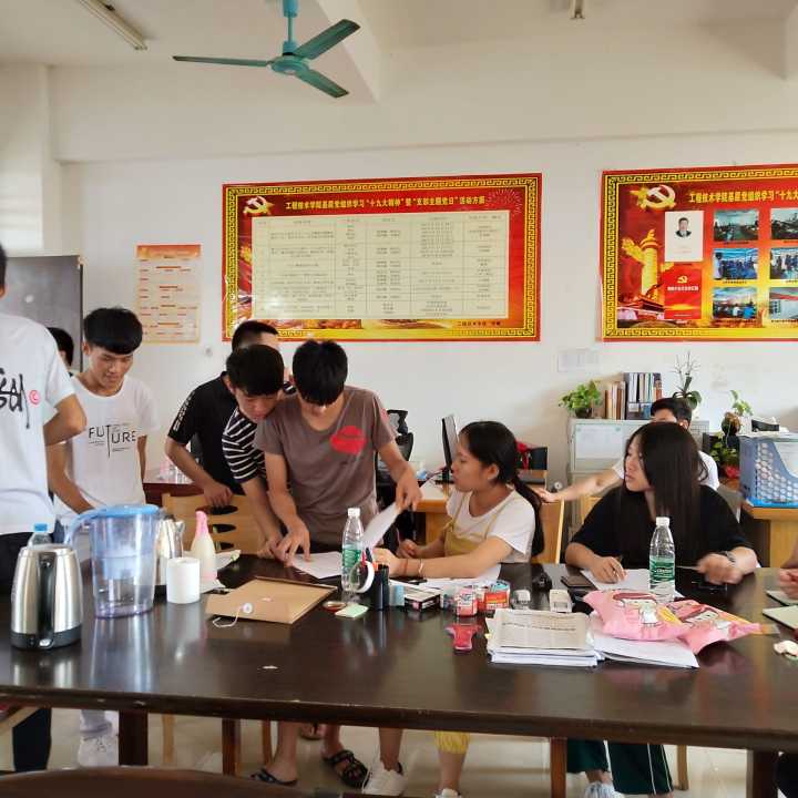 前来报到的同学热情洋溢,充满朝气蓬勃的气息。在团学青成员的帮忙下,顺利的完成报到,每个人都露出来笑容。